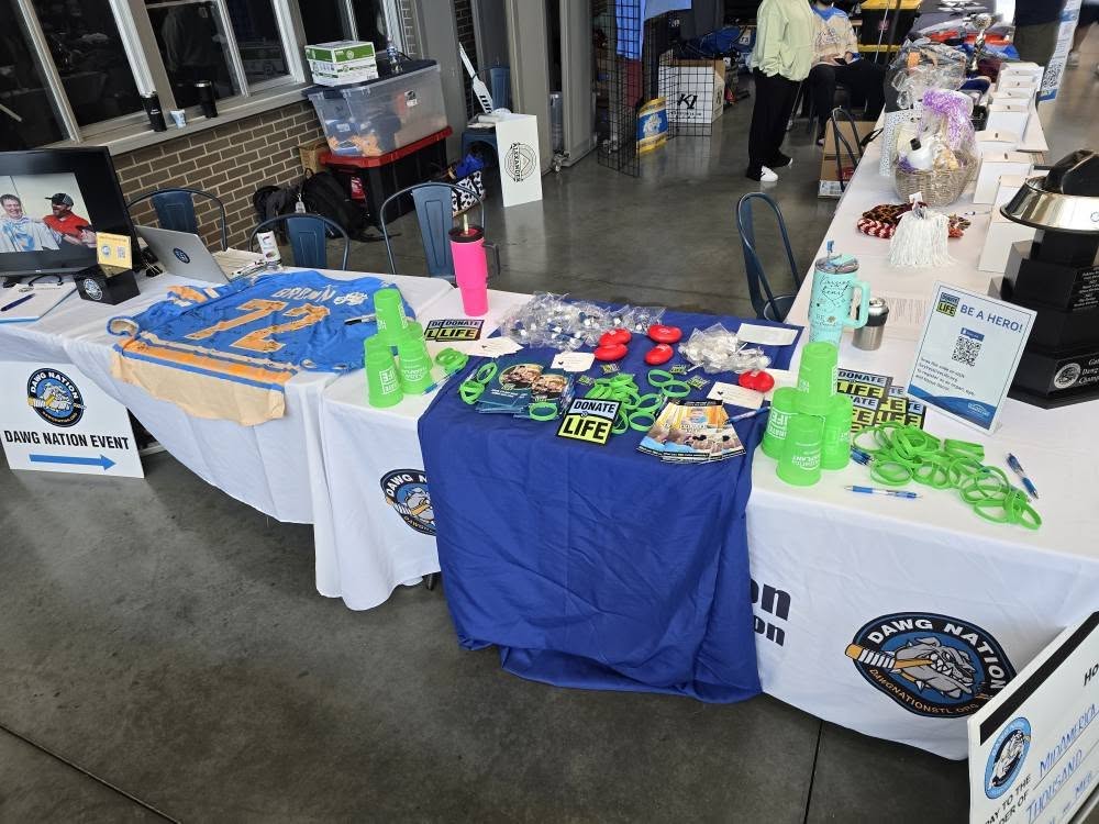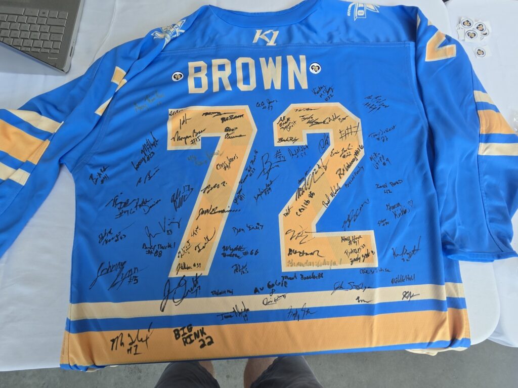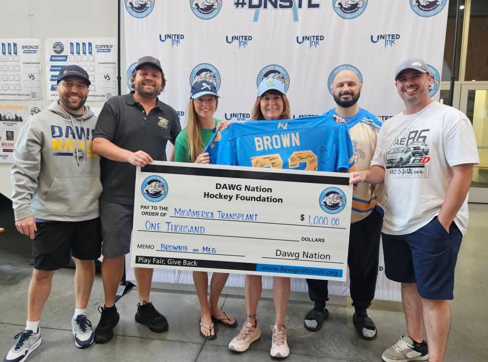 A big thank you to the Mid-America Transplant volunteers for joining us today. The hockey community is incredible, and we’re here to honor Brownie.