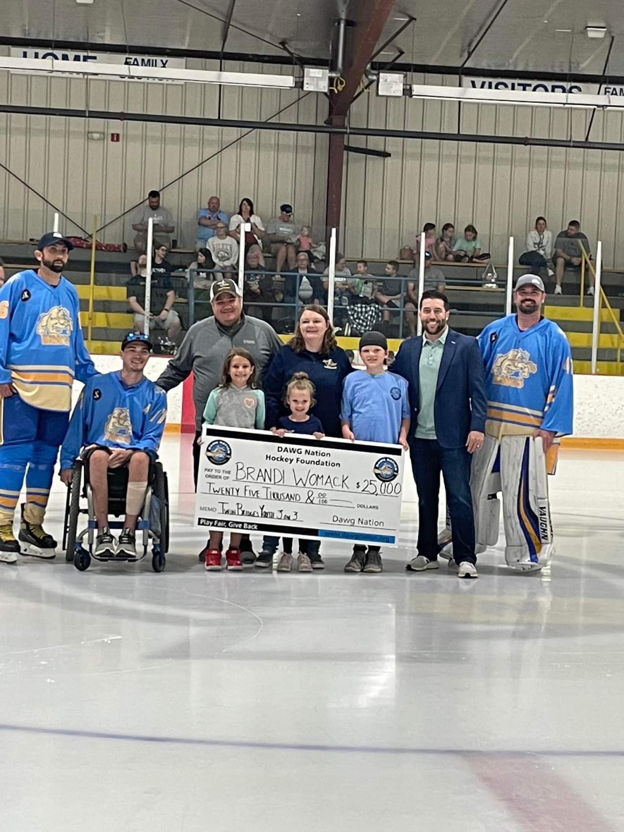 Teaming up with the Twin Bridges youth organization, we surprised Brandi Womack and her family with a BIG check yesterday during a 3-on-3 youth tournament. Brandi is a fighter through and through, though she’s recently faced a setback in her battle with brain cancer. With her loving family and the hockey community rallying behind her, she’s ready to drop the gloves and go for the knockout against cancer. Thanks to the support of many, we’re aiming to make a real dent in the mounting medical bills so Brandi can focus on what matters most. Please join us in sending the Womacks our very best.