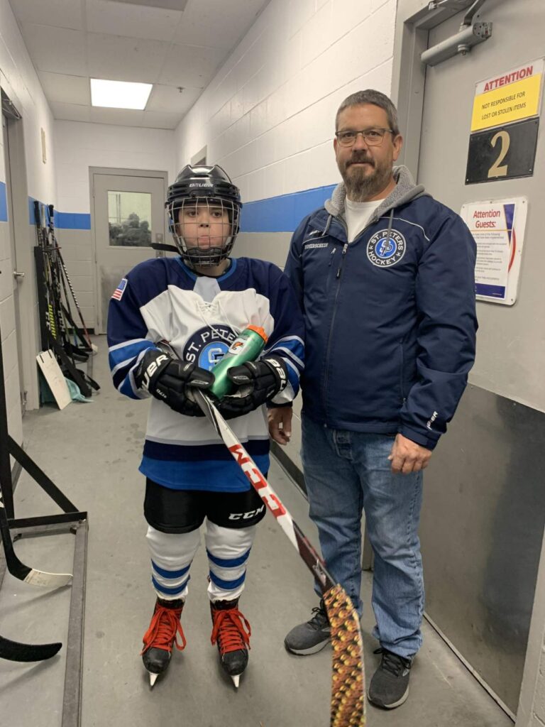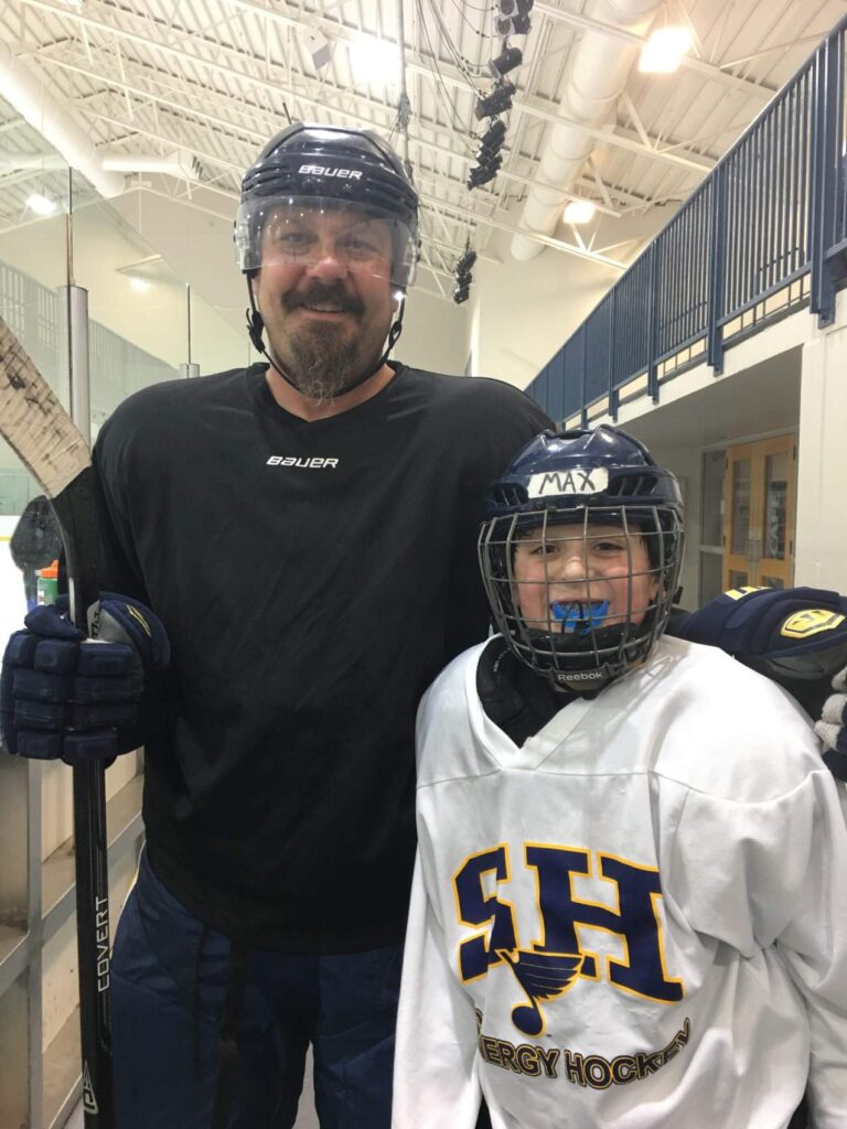 Chad Bomerschein didn’t grow up playing hockey, but he discovered a love for the sport while watching the St. Louis Blues. That passion grew when he signed his sons up for skating lessons about eight years ago. After spending time watching from the sidelines, he decided to lace up skates himself to help the little ones stand and push buckets on the ice. His greatest joy comes from seeing the kids light up as they start skating on their own without the buckets.