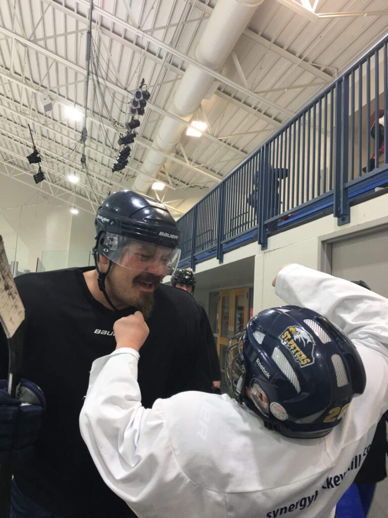 As the kids grew, he jumped in to help on the ice with his younger son’s 6U team as an assistant coach. He also spent multiple seasons helping with his older son in 10U and later with his younger son in 10U again. By the 2021-2022 season, Chad decided his coaching days were over. His boys had surpassed his skills, and he wanted to watch their progress from the sidelines. Coaching sparked something in Chad, though, and he felt the urge to give it a try himself. He started with roller hockey, then quickly transitioned to ice hockey where he fell in love with the game.