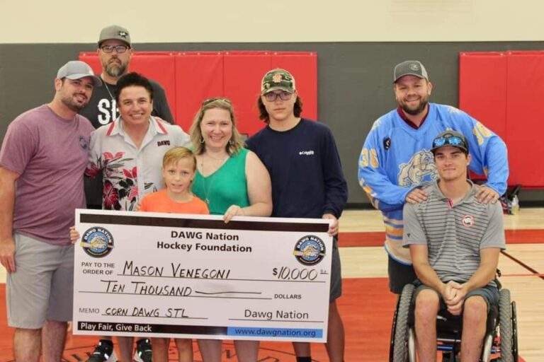 It was quite a day in Belleville, Illinois, as we hosted an amazing cornhole event and supported another family! Ten-year-old Mason Venegoni, a young goalie, recently underwent surgery to remove a brain tumor. The procedure was tough but successful, and this brave goaltender is now on the road to recovery. Now for the “no coincidences” moment—former St. Louis Blues enforcer Reed Low, who’s been a big part of our cause for a couple of years, wore number 34 during his playing days. Today, he wowed the family by giving Mason a signed goalie stick and promising to take him to a Blues game. I then asked Mason how many stitches he had. His reply? “34.” Of course it was!