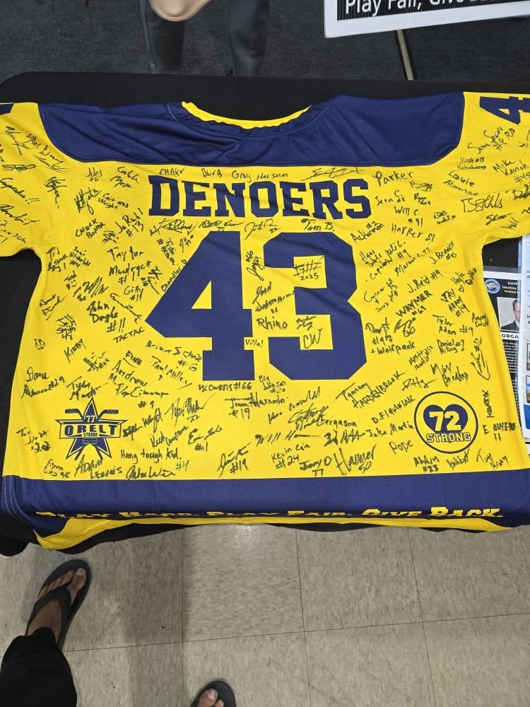 Our Hockey Heals group and team hit the road for the first time to Louisville this weekend to offer support to Morgan DeNoers. Morgan sustained a serious spinal injury while playing hockey in a tournament last April. This weekend, we will be skating in support of Morgan. We had the opportunity to meet Morgan and his family in a few hours as he courageously returns to the same rink where the incident occurred.