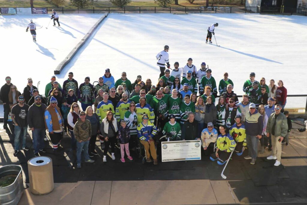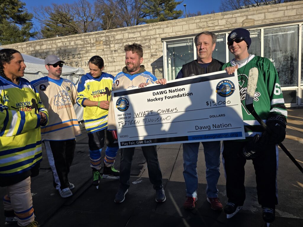 Despite the challenges, Wyatt and his family eagerly joined in a variety of weekend activities, including volunteering. We were thrilled to present them with a $15,000 check on the ice before their final game, surrounded by loved ones. Wyatt, his dad Bill, and his brother Elliott are now proud members of our DAWG Nation family and have continued to show up at future events, always ready to help others.